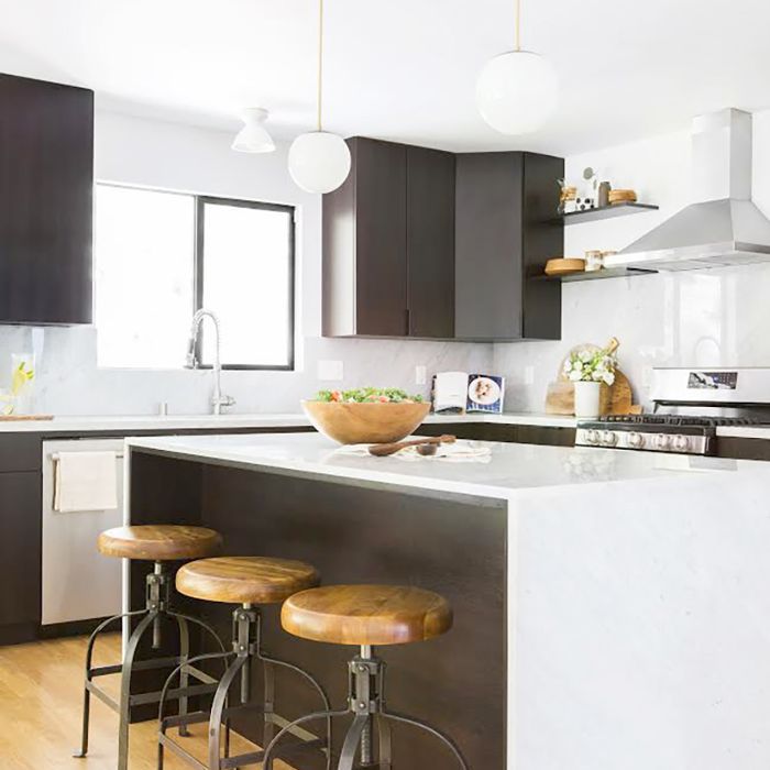 “从过去的几年里,白色和黄铜的厨房让我们渴望核桃树林和黑金属的富有温情和亚光纹理,因为我们进入2018年”- 艾琳弗朗索瓦