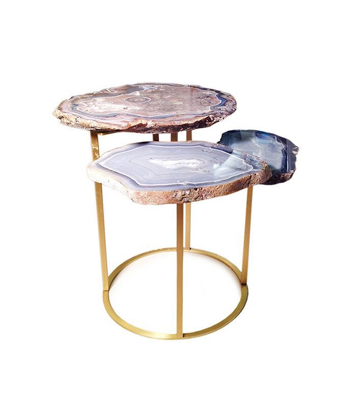 玛瑙咖啡桌和边桌让乐趣女性化的口音,与岩石的边缘添加纹理发挥柔软舒适的休息。因为任何美眉空间可以使用一些额外的漩涡和火花。