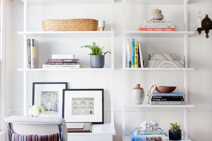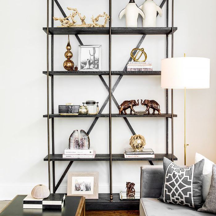 在一个别致的客厅SHELFIE,玛瑙压书做出折衷,良好的旅行配件之间的尺寸样式声明。在这个书架,宝石是很自然的选择,以弥补金属微光与有机风格质朴的木质装饰。