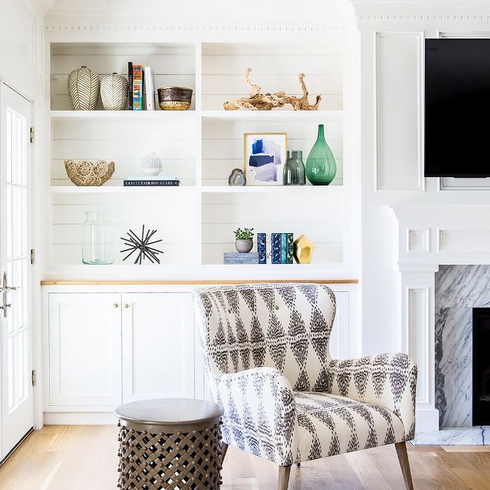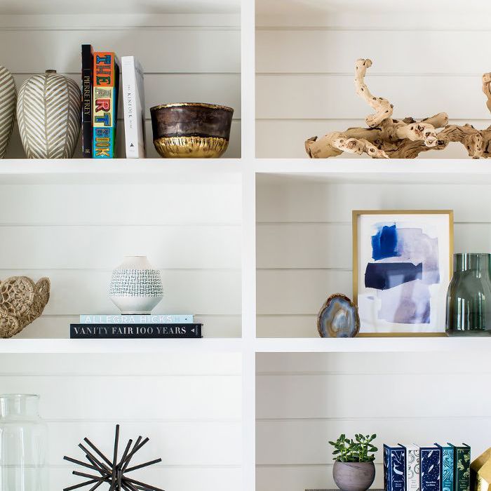 在一间更具有海滨时尚美感的客厅里,玛瑙在祖母绿和海产色调中很容易找到家的感觉。在这个书架上,多色玛瑙有助于将海洋的蓝色和绿色与手工陶器和浮木上的棕褐色色调联系起来。