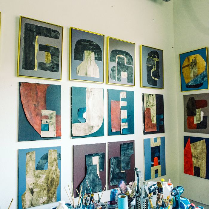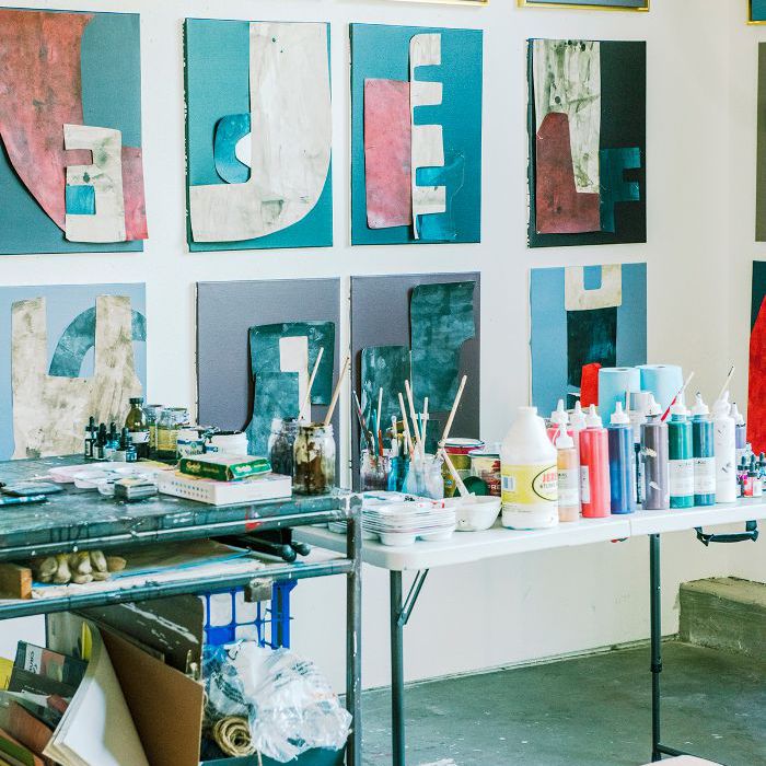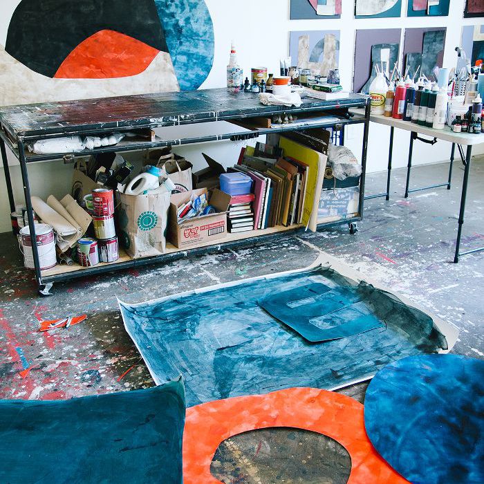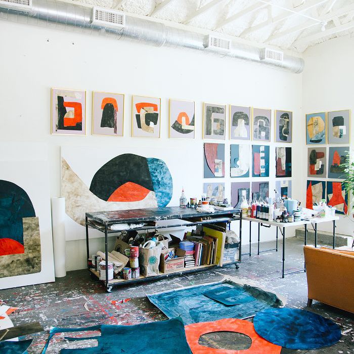 “设计是魔术的创意非常重要而这设计对我来说是非常简单的:用白色的墙壁,高高的天花板和光线充足的大矩形框确实没有什么更好,我一直在说真的狭窄的空间。, which limited me certainly by how big I could go with my work. The studio I'm in currently (for about two years now) is 900 square feet and has allowed me to finally create work on a larger scale, and that’s been a game changer.