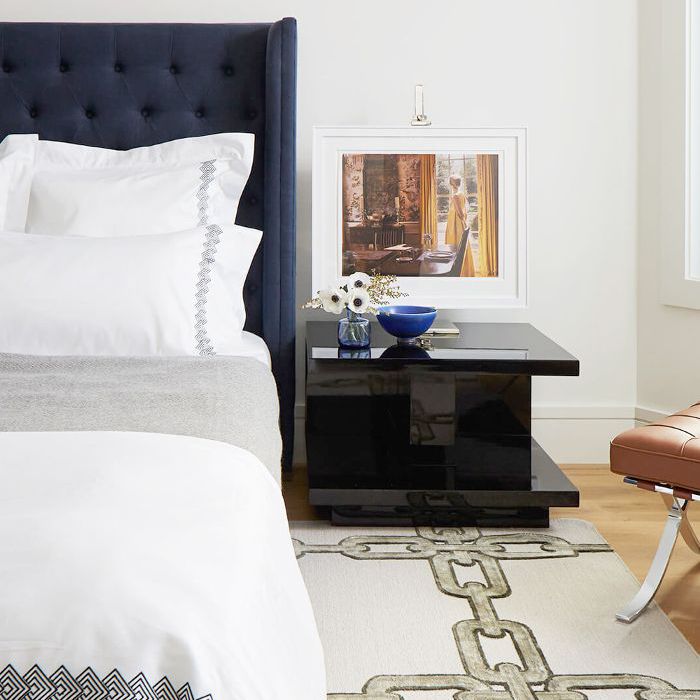 为了将微妙的装饰艺术设计,选择床上用品是曲折的功能细节,天鹅绒内饰和簇绒地毯,并具有较大规模的图案。虽然这家位于加州的卧室看起来极具当代,装饰艺术口音绝对彪炳,赋予它独特的吸引力。