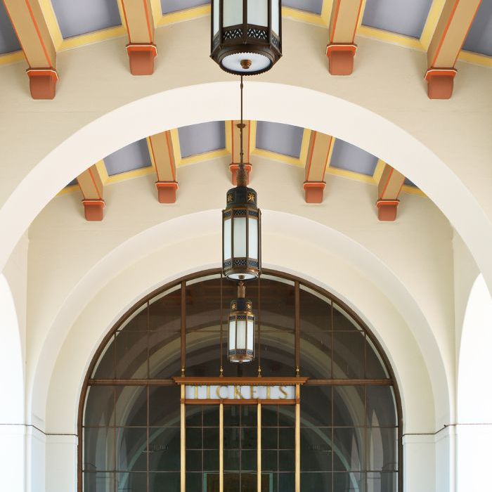 联合车站位于洛杉矶市中心,融合了该地区的一些主要建筑影响,包括复兴教会和装饰艺术,具有强烈的地方感。高得惊人的天花板和重复的拱门让你感觉就像步入了一个千变万化的时间机器。
