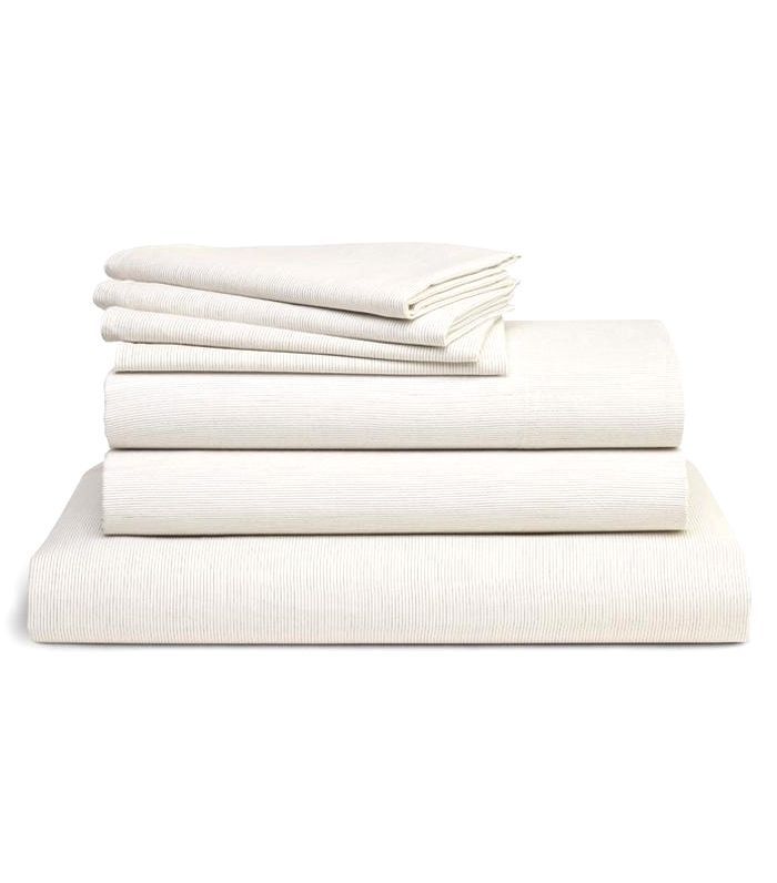 我第一次摸到Brooklinen的斜纹床单是在一次预展活动上,我立刻意识到我必须要有它。我试过很多床单,没有床上用品让我更快乐。这绝对是冬天的床上用品,因为床单可以变得有点温暖,但它们是你睡觉时最舒适最柔软的床上用品。这就像穿上你最喜欢的毛衣,但更好。在这一点上请相信我。”