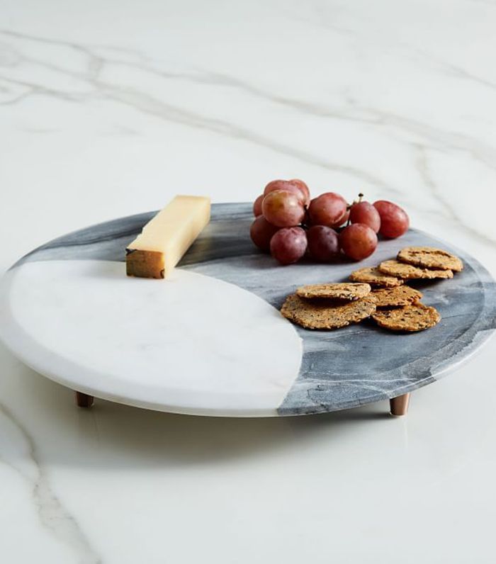 如果你倒酒,它是安全的假设你服务奶酪了。这铜脚大理石芝士板非常适合复杂的晚会。