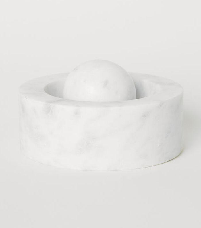 每个人都应该在厨房里杵臼,它是如此得心应手。但是,如果它要上的显示,那么就需要看的部分。这块大理石的版本是相等的部分相当实用。