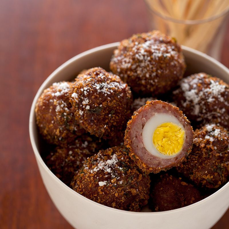 英雄成分:这苏格兰鸡蛋要求一个鹌鹑蛋,而不是预期的鸡。香肠包裹着,这是一个腐朽的咸味零食。