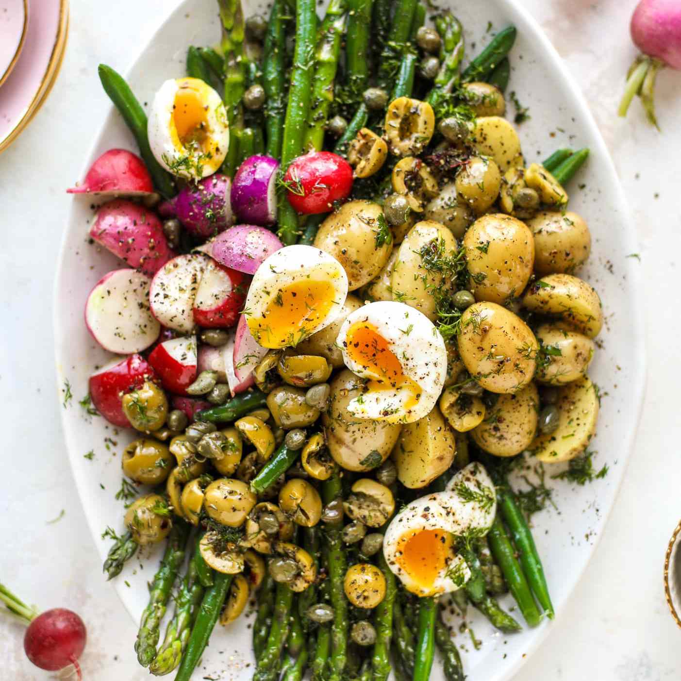 英雄成分:我们喜欢上一个经典Niçoise大厦沙拉这个素食主义者服用。绿色豆类,芦笋,橄榄都是传统的成分,但你可以很容易地与您最喜爱的蔬菜定制的。