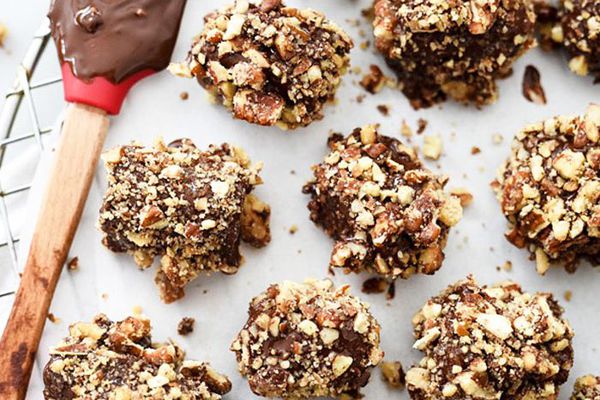 不要忘记:“在切成条状之前,让混合物完全冷却,”麦钱特说。“你可以在切之前或之后把巧克力洒在上面,也可以蘸着吃。”