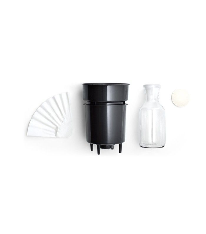 滤液提供许多配件,使完美的一批冷酿造在家里。我们特别喜欢放在冰箱里的玻璃水瓶。