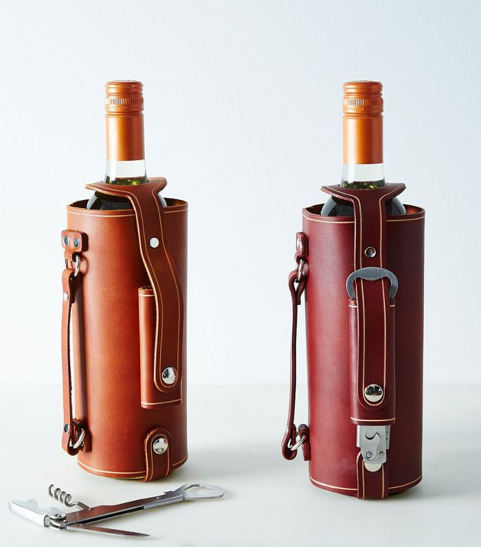 对于提交的酒量,皮革处理的葡萄酒运营商小心地从一个地方运送一瓶你最好的一个到另一个。
