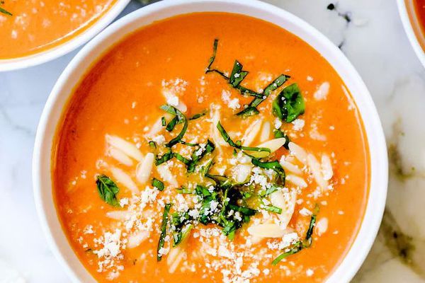 配方:虽然这veggie-packed汤它充满了冬季的绿色,适合一年中的任何时候。(真的,花椰菜、球芽甘蓝或西兰花吃起来有没有不合适的时候?)虽然有些奶油汤不能很好地冷冻,但是这个食谱要求用混合的腰果来代替标准的奶油。这样一来,每一次你冷冻和再加热的时候,这道菜都会有一种令人愉悦的光滑口感。