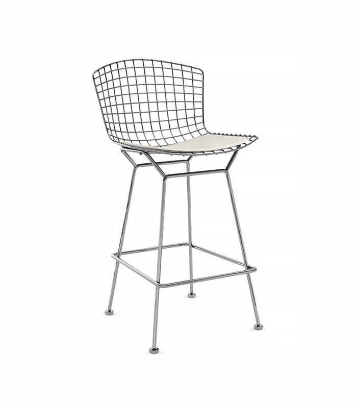 她厨房里的贝尔托亚(Bertoia)柜台凳给这个空间带来了一种现代复古的氛围。只需添加金色的木橱柜和蓝绿色的口音。
