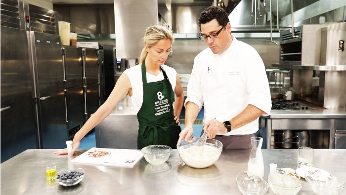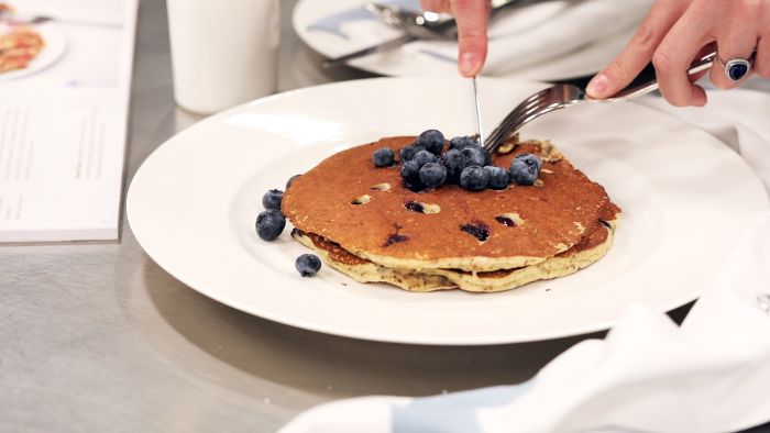 没有什么比看到一堆淋着枫糖浆的煎饼更让人高兴的了,尤其是在一个寒冷的早晨。这的确是一种永远不会变老的简单快乐。但是与其出去吃早餐,为什么不在家自己做呢?看了道恩·罗素的作品后8个蔬菜还有David Codney, the半岛酒店只要几分钟,我们就能做出一份健康的蓝莓煎饼食谱,让它成为周日早餐的惯例。
