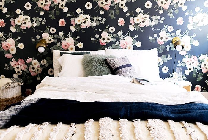 如果你想创造人间天堂,模仿莫妮卡梦幻般的卧室就可以了。碎花墙纸是一种时髦的女性和男性的融合,我们无法满足。