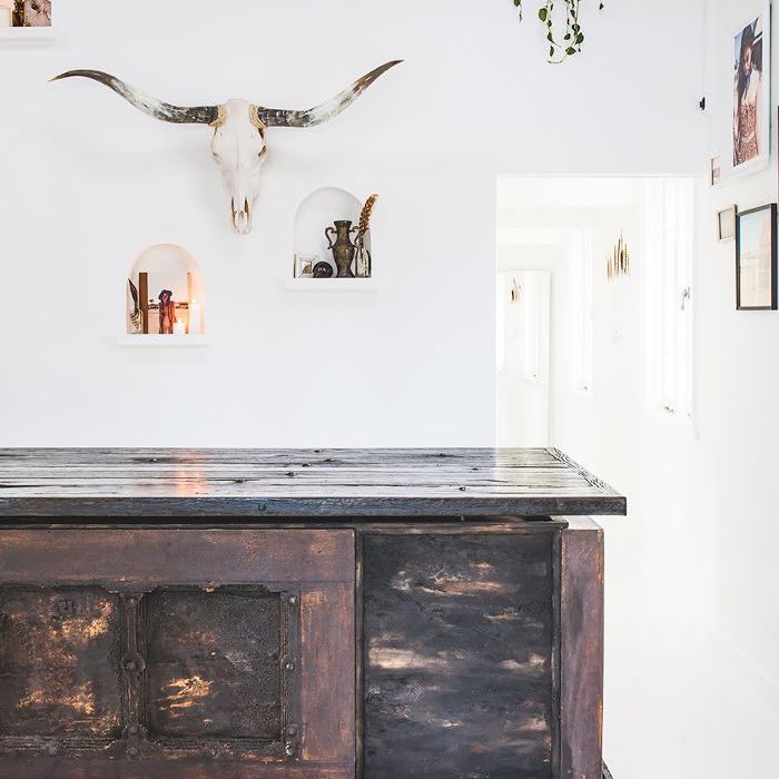 在裸露的横梁,从老桥Bangalow回收,而我们的计数器从旧天桥制成。我们花了近七年来沉浸在如此多的令人难以置信的内饰和形象,这不是努力创造一个引人注目的心情板上,我们可以回到。