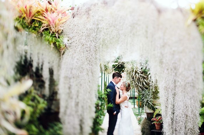 Melissa和亚当是一个郁郁葱葱的自然环境为他们的婚礼后,看着高和低后,他们偶然发现Shelldance兰花园。两人交换了花园的温室誓言,用藤蔓和他们身后的手工花边壁挂包围。