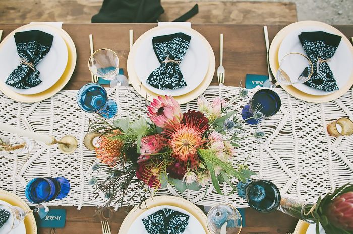 当澳大利亚模特和摄影师康迪斯湖娶她的男友建筑师迪迪埃瑞安,他们选择了在他父母的花园,俯瞰悉尼海洋休闲的环境。与博霍主题的自然氛围保持一致,湖在她的花束选择了澳大利亚的野花和一个冷冻了在郁郁葱葱的绿色草坪设置。
