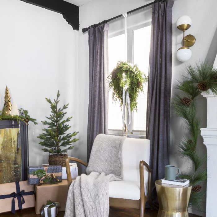 “在犹他州长大意味着感恩节后的第一个周末,全家人会和我们所有的堂兄弟们一起去山上砍一棵新鲜的树。二十年后,我住在阳光明媚的洛杉矶,我没有同样的选择——但我仍然总是试图把一些自然元素融入到我的假日装饰中。今年我用了一个新鲜的树和“DIY”一些真正的花环花环对于每一个我的窗户,但即使你喜欢更大的人造元素,包括真实的东西到装饰,不管是几松枝在一个花瓶,一些树树枝上地幔,或门上新鲜的花环。混合这两种人工和真正的元素融入到装饰将帮助它感觉更真实和喜庆。”