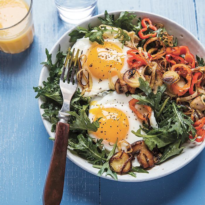 “我知道你在想什么;沙拉的早餐?你不是开玩笑吧我!对此,我想说的是,在你没有尝试之前不要去敲打它。我喜欢把一大把的绿色蔬菜倒进碗里,然后用美味的蛋黄做调料。当我更有野心的时候,我可能会在蔬菜上放一些炒过的蔬菜,比如韭菜、蘑菇和辣椒,但大多数时候,只有我、蔬菜和两个鸡蛋会举行一个叫醒派对。”
