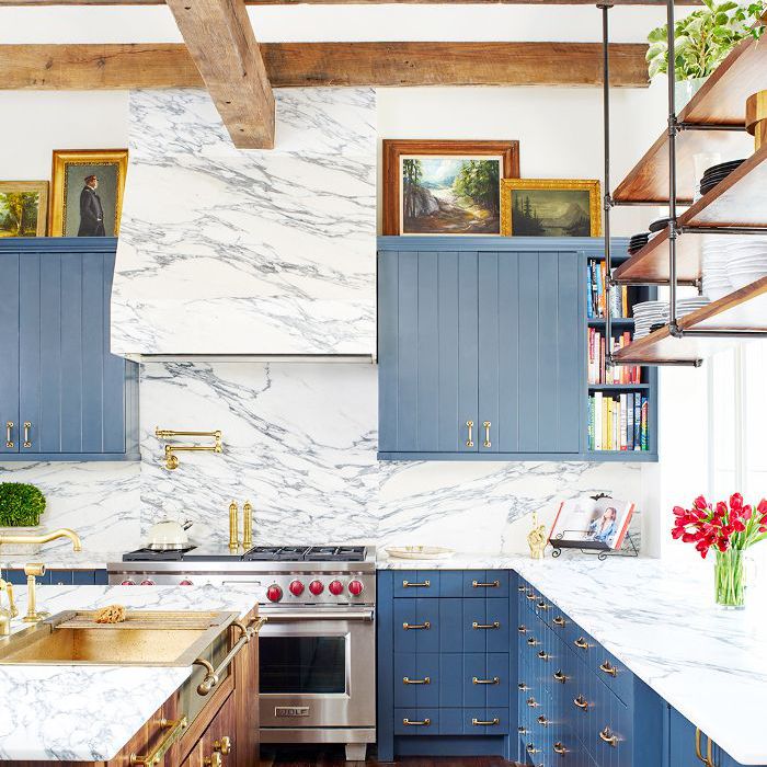 Decker的showstopping厨房是一个超凡脱俗。虽然你可能无法覆盖的卡拉拉大理石你的墙,你可以画你的橱柜和顶部添加了一些复古的油画。