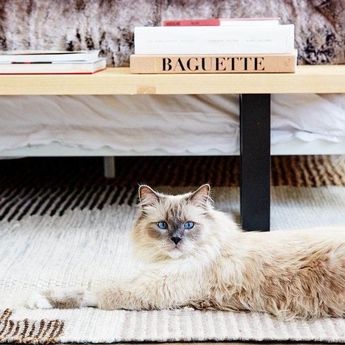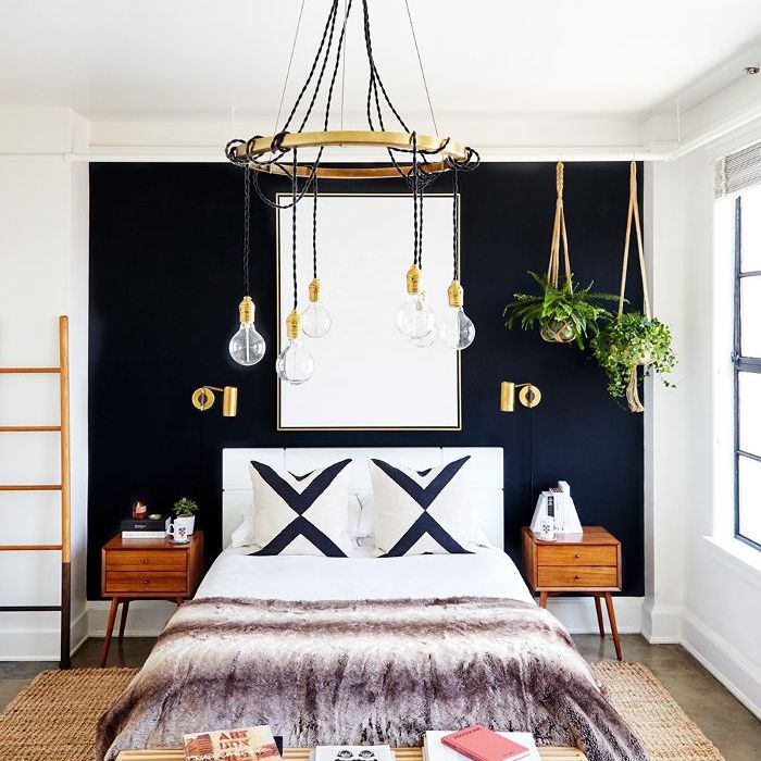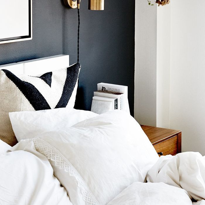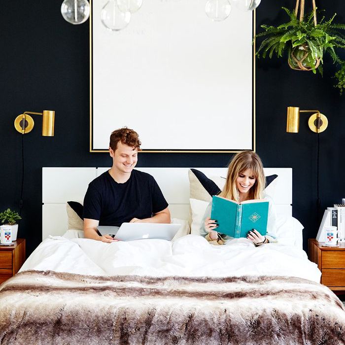 “白色的大画在我们的卧室是我自己做了。”杨印刷尺寸过大的画布上的最喜爱的歌曲的歌词,从而在制服,鲜明的白色对位磨砂黑色壁和粗体金属硬件。“我有点做我自己的事情就可以了,白,编出来的,”她说,这项工作的。“我希望它有很多的质感。”