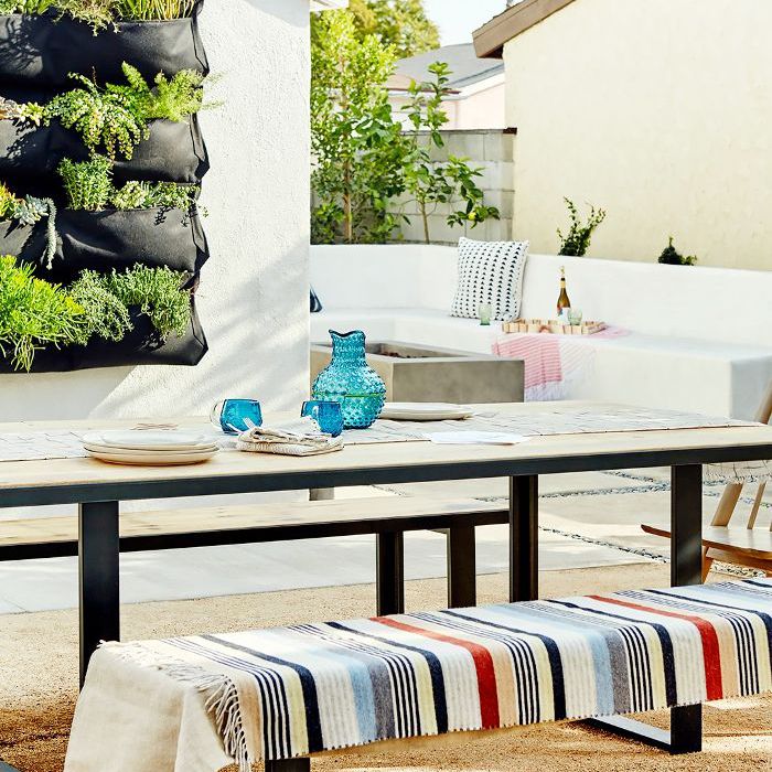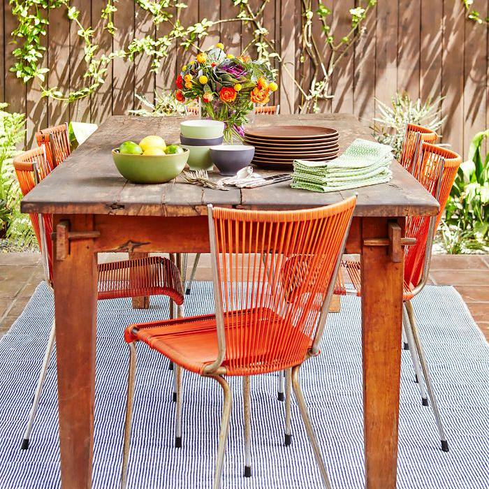 当我们参观康斯坦斯齐默的家去年夏天,虚幻女演员告诉我们,她要一个“圣巴巴拉和西班牙的氛围。”她大胆的橙色餐椅,插花和再生木材表肯定捕捉这一点,让我们渴望一个温馨的夏季聚会。如果你是Zimmer的风格的球迷,你可以重新创建了由露天购物,这些佼佼者,并加入了时尚的条纹地毯进入方程的用餐空间。