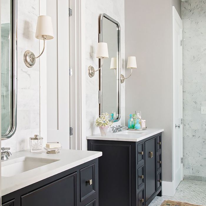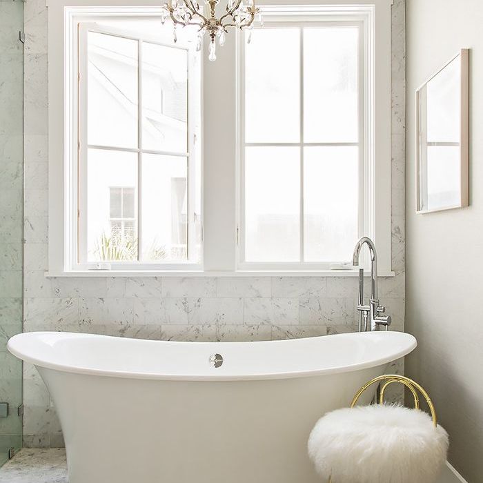 虽然这位年轻的母亲想让自己的家充满色彩,住在里面,但她选择了一种更经典的主浴室方式。“现在,我喜欢色彩有很多原因,”她说,“主要是因为有了年幼的孩子让我想要变得有趣,而不是太严肃。我们的生活方式很有趣,也很忙碌,颜色也很适合我们。”While this rings true throughout the house, the Carrara marble bathroom served as a departure from the family's busy lifestyle.