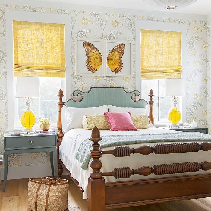 在客房里,基南使用了明亮的绿松石和淡黄色调的混合,创造了一个生动的撤退。她说:“在路上的某个地方,我买了一对老式的黄灯,这真的为客房定下了基调。”