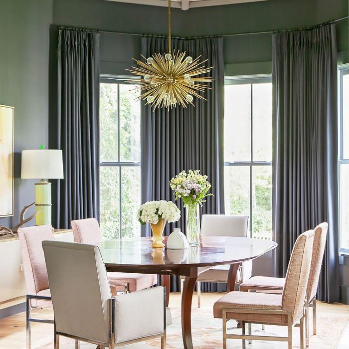 一个完美的餐厅和一个戏剧性的八角形的天花板作为正式的娱乐性和戏剧的完美空间在南方的好客的传统:一个经典的椭圆形桌子,邀请餐椅亮粉红色织物软垫,丝绸壁纸,戏剧窗帘周围空间告诉的故事早已有趣的传统。的上升人造卫星吊灯悬挂在上方,象征着一个更现代的时代。