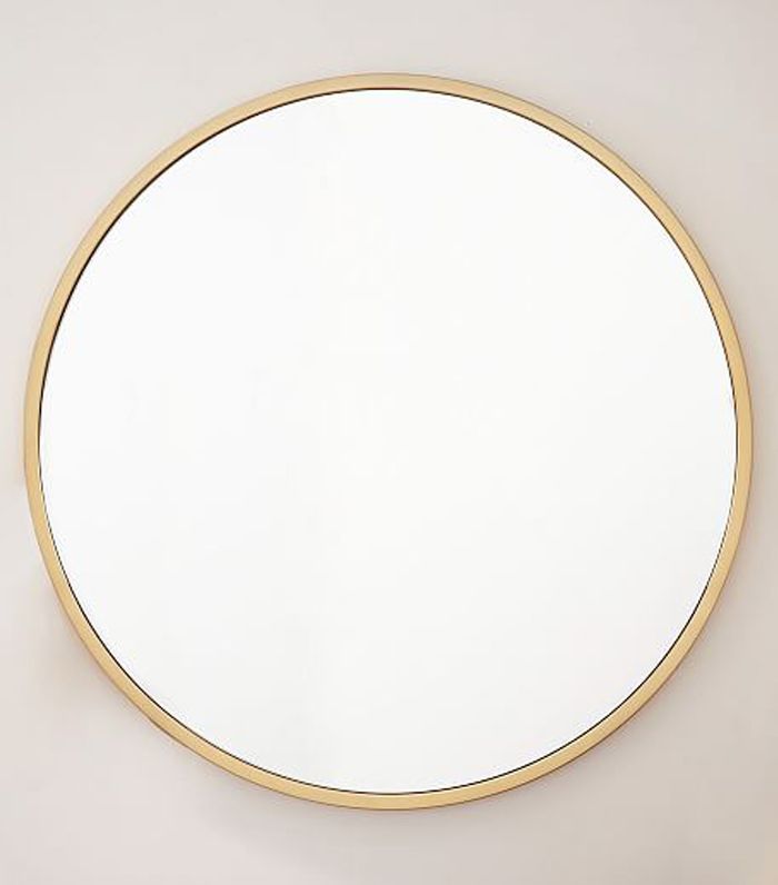 这Pottery Barn的镜面有一个老式的黄铜表面,增加了铜锈的任何空间。