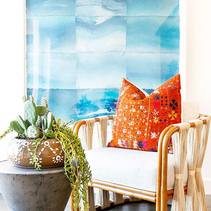 吊床和吊椅上添加乐趣因素的任何房间,让人回想起自己喜欢的博霍的海滩度假胜地。在艺术描绘一个舒缓海景的前摆动,这个沿海的椅子是房子最轻松的座位。