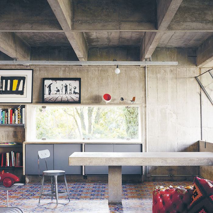 在巴西圣保罗,具体字面上符合由建筑师保罗·门德斯这个现代派别墅丛林。他用带来生命到否则严峻的地方一个窍门是添加纹理和颜色,如羊皮毛绒地毯,斑马隐藏或救火车红色切斯特菲尔德沙发。地板,在图案彩瓦水泥瓦成品还增添色彩和深度的空间。