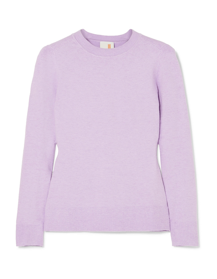 它不会比棉和羊绒混合的圆领毛衣更经典了,但这种明亮的黄绿色色调增添了完美的活力和棱角。
