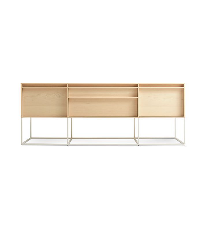 大量的封闭存储空间可以容纳所有额外的空间杂乱。这个来自Blu Dot的控制台在风格上是最小的,所以你可以同时拥有你的蛋糕和吃它。