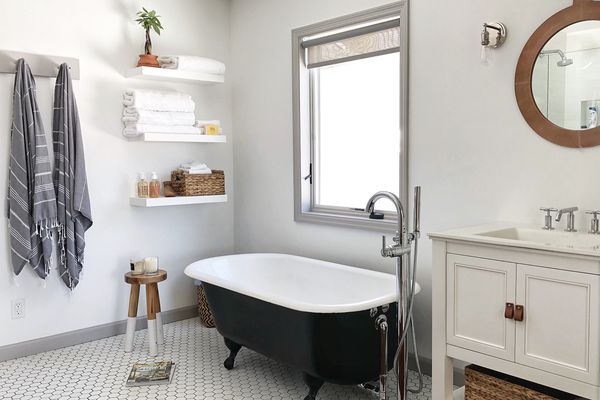 当大多数人满足于一个全白的壁橱时,亚当斯想要一些更有个性的东西,仍然感觉是永恒的。最后,她用波托拉(Portola)的一种叫做“衣橱羊绒”(Closet Cashmere)的颜料创造了一种定制的颜色,介于腮红和裸色之间。