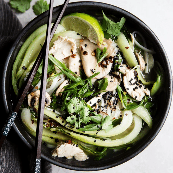 米粉添加到汤。一旦米粉软化,你准备配菜和服务。