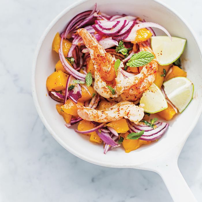 充分利用夏日的芒果,做一份甜辣可口的辣酱,搭配这道清新营养的烤大虾和米粉沙拉。