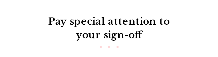 你的签名,不仅仅是一个结尾,在商务信函中也是必要的,因为它有助于正确的人与你取得联系。如果你提供了重要且正确的联系方式,那么当你和新朋友联系时,你就有最好的机会收到对方的回复。你应该提供你的全名,公司,电子邮件,在某些情况下,还有电话号码,这样你的邮件接收者就可以很容易地识别你,并通过快速搜索他们的收件箱与你联系。
