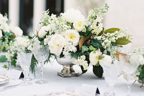 婚礼的气氛很大程度上是由装饰细节和花卉的配色方案决定的。“带有时令鲜花和树叶的花束总是在秋天流行,但是软李子给了它们一个更有情调的调色板,”Dawbarn这样描述。
