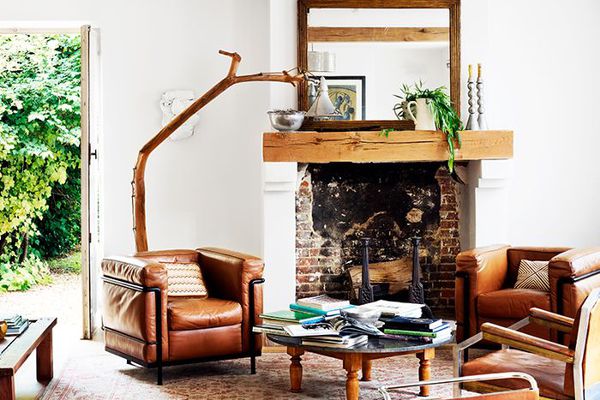 想要一个更流线型、更少巴洛克风格的法国乡村客厅,可以从这里汲取灵感玛丽Flanigan内部设计的房间。注意高,丰富多彩的窗户治疗,并强调纹理元素,主要是木,黄铜和砖。难道你不能看到自己踢回一本好书吗?