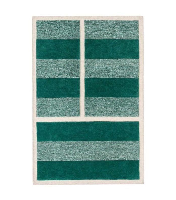 在这个维多利亚时代的乡村住宅里,Natale保留了黑色、灰色和绿色的有限的调色板——使用绿色的重复口音来引入带图案的地毯。地毯上的几何图案、植物和绿色的色调都有助于将这个阴郁的家庭活动室的室内和室外联系起来。