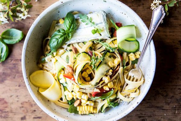 奶油西葫芦面条配白扁豆、葱酱和奶酪葵花籽