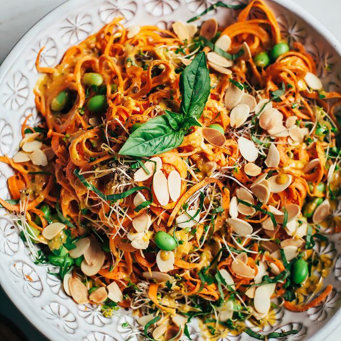 英雄成分:该spiralized红薯在这素食主义者的沙拉是完美的碳水化合物让你整天去。