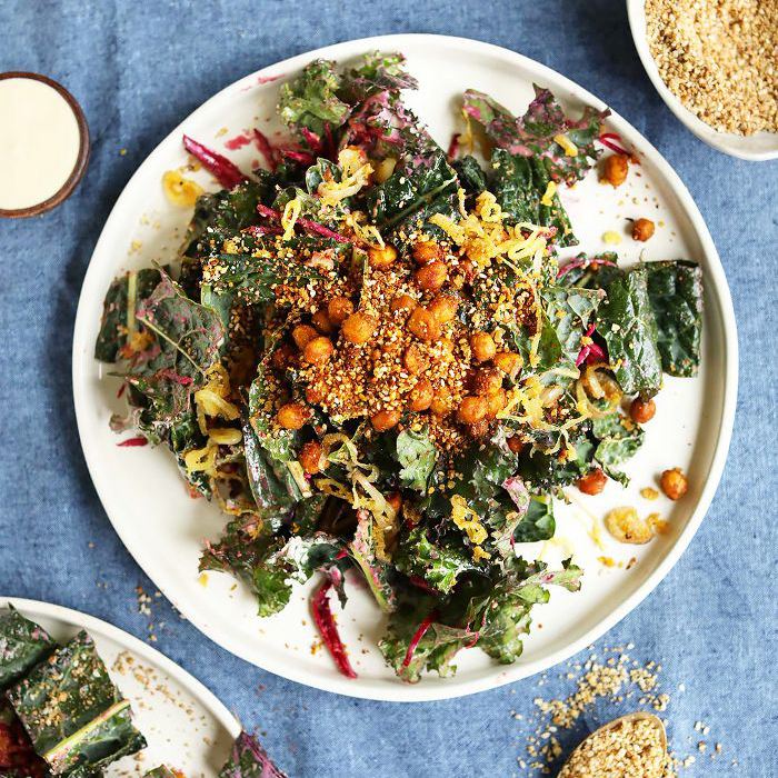 英雄成分:在这个埃及dukkah香料羽衣甘蓝沙拉带出地中海风味的烟熏和坚果有一点点紧缩。