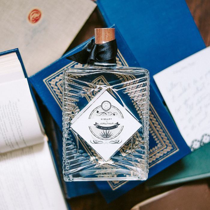 “乔纳森知道我爱梅斯卡尔酒,从而为婚礼一个惊喜,他计划与定制瓶梅斯卡尔酒敬酒,他设计的洛拉·冈萨雷斯,”科尔说。“该梅斯卡尔是La Palabra这是一家位于墨西哥瓦哈卡的小批量公司,使用100%的有机龙舌兰,非常棒。”