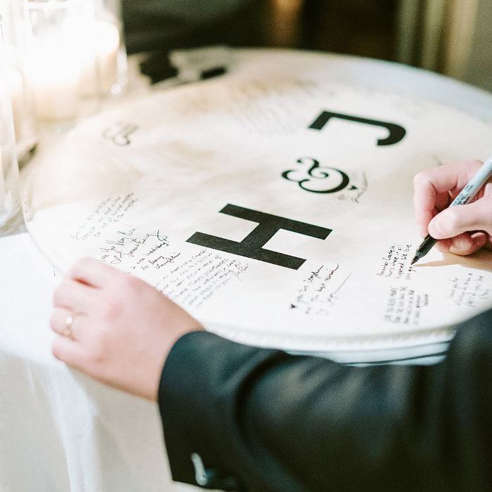 她说:“我最喜欢的一个细节是,乔纳森为婚礼定制了一个个性化的鼓手。”鼓上印着这对夫妇名字的首字母缩写,随后展示给客人签字。“他还创作了我的游行歌曲,这是我第一次在婚礼上听到这首歌。”