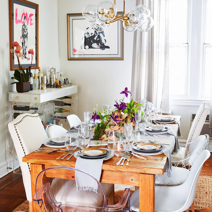 “餐厅可以让你在餐桌上发挥你的创造力,”沃特斯说。“谁说你需要鲜花和蜡烛?”石榴和装满贝壳或浮木的篮子怎么样?如果你已经收集了它,你可能会用它做一个杀手中心装饰品。混合搭配高脚杯喜欢与无与伦比的新老中国菜有乐趣。重新利用你最好的‘东西’,让它成为晚餐时间谈话的开始。”
