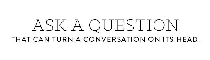 颠倒话题是引发有意义的、有时甚至是激烈的讨论的好方法。但这可能不是开启对话的最佳方式。我们认为最好的测试方法是问一些你不介意自己回答的有创意的问题。你可以把“你在哪里长大?”变成了“我爱那个城市;你为什么要搬家?“如果你的谈话对象对这样的问题持开放态度,他/她可能也会对有意义的谈话持开放态度,并为你偏离了标准的问答而感到高兴。