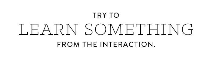 问问题是和别人交流的最好方式。但是,如果你在闲聊的时候,真正的目标是学习一些能增加你知识的东西,你可能会更专注于手头的话题,而不是潜在的沉默。如果你是在寻求知识,你就不会太在意自己的政治立场是否正确,也不会太在意自己的外表是否“勉强”,而更倾向于对别人说的话真正感兴趣。